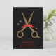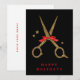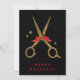 De här gyllene saxarna från glitter gör ett perfekt kort åt ditt företag. Text lätt att justera! En klassisk svart och gyllene färg-kombination. Elegant hårstilist-mall med ett rött band.