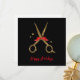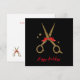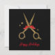 De här gyllene saxarna från glitter gör ett perfekt kort åt ditt företag. Text lätt att justera! En klassisk svart och gyllene färg-kombination. Elegant hårstilist-mall med ett rött band.