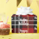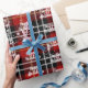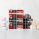 Vit Glad helg och snöflumma mönster på svart och röd skotsk tartanbakgrund. Text kan redigeras.