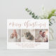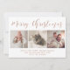 Det här moderna julkortet innehåller tre av dina personliga foton, med trendig faux ro guld kalligrafi på vit bakgrund.