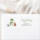 Enkel och söt Glad helg-adressetikett med en illustration av ett sött snögubbe och vissa djur. Perfekt som komplement till din julstation. Illustrerad och designad av Patricia Alvarez.