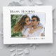 Modern minimalistisk vykort från stil helgdag med "Glad helg", personlig namn och år i ny sofistikerad typografi. Den här designen har ett foto från helgdag som markerats av en unik modern övertoning ram. Kortets baksida innehåller ett textutrymme för ditt anpassningsbar-meddelande eller kan lämnas tomt så att du vid behov kan skicka ett meddelande.