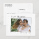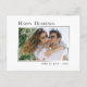 Modern minimalistisk vykort från stil helgdag med "Glad helg", personlig namn och år i ny sofistikerad typografi. Den här designen har ett foto från helgdag som markerats av en unik modern övertoning ram. Kortets baksida innehåller ett textutrymme för ditt anpassningsbar-meddelande eller kan lämnas tomt så att du vid behov kan skicka ett meddelande.