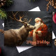 Fira årstidens magi med detta hjärtslitande kort som ger Jultomten ett ömtåligt ögonblick med en majestätisk renare under det mjuka fallande snö. Den fredliga vinterscenen fångar perfekt julstämningen och det speciella bandet mellan tomten och hans lojala kamrater. Idealisk för att ha skickat helgdag till vänner och familj.