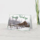 Den här helgdag har en grönt med framkantad snowy rustic lada och ett landskapsfoto med ett matchande grönt "Glad helg"-meddelande längs överkanten. Anpassa omslaget och inuti hälsning i fält eller ta bort texten för ett tomt insida.