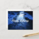 Glad helg vykort med blå snöströ vid kvällskymning i vackert vinterläge.