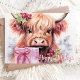 Skicka varma semesterhälsningar med det här vackra höglandsjullkortet för höst! Med en charmerande ko som har en fetiös inslagen present, accentuerad med holly och en snö-dammad bakgrund, är detta kort perfekt för alla som har kärlek boskap och rysk helgdag utformning. Ge dina vänner och din familj ett leende till ansikte med det här helgdag.