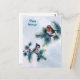 Gammalt moderat Glad helg-vykort med en rån och en liten vattenskåpa på grenar med varma vinterhattar på.