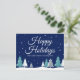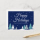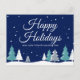 Vackert midnatt blå himmel med julgran träd dekorerar söten, anpassningsbar Corporate Glad helg vycard. Snö linjer, den vackra skogen och det vita snöflingor sprinkler sig i luft nattetid. Anpassa de här visitkorten från ditt företag.