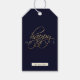 julklapp i vår marinblåa och gula "glada helgdagar"-design. Anpassa dessa presenttaggar med ditt familjenamn. Taggen återgår till en fast marin blå design.