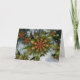 Festliga röda blommor för Fractalkonstvisning och gröntlöv över en mörk bakgrund med snöflingor. Textinsida: "Glad helg" i portugis, fransk, engelska, tysk och spanjor.