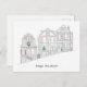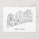Handritat julkort som illustrerar de dekorerade viktorianska husen som ligger längs San Franciscos gator.