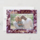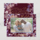Glad högtid i svart kursiv text. Vinröd glittrig bakgrund med guld, stjärnor och ljusklot. Lägg till familjefoto, namn och valfritt meddelande på baksidan. Om du inte vill lägga till ett meddelande, antingen raderar du texten (i avsnittet anpassa) eller ändrar den till jul 2020.