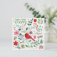 Glad höjtid V | Denna ljusa "Glada" högtidsbild visar en söt röd kardinal omgiven av julklappar, julstjärnor och andra festliga högtidselement. | 54664HR