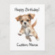 Denna charmiga akvarellstila hunddesign med frasen ”Grattis på födelsedagen!” och anpassat namn. Det är perfekt för hundälskare.