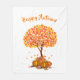 Lägg till mysig värme i ditt sovrum eller vardagsrum med denna mysiga höstfilt. Filten har en vit bakgrund med en illustration av ett höstlövträd, fallande löv, pumpor och en svart katt.". Använd denna filt under hela höstsäsongen i ditt vardagsrum eller sovrum. Filten visas i en medelstorlek, det finns två andra storlekar tillgängliga.