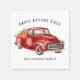 Designen har en akvarell röd lastbil som bär pumpor med rustik typografi och familjenamn.