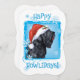 Fira julen med en söt Black Russian Terrier som bär en tomtehatt och schal bland snöflingor med orden, Glad Howlidays! Perfekt för BRT-älskande familj och vänner.