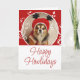 Glad Howlidays Röda Lövverk Hund Namn Foto Julkort. Vackert vitt lövverk på röd bakgrund. Personifiera prydnaden med din hunds foto, familjenamn, år och meddelandet inuti eller sudda ut det.