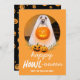 Gör dig redo för en hurlande rolig tid med vårt "Happy Howl-oween"-kort! Det perfekta sättet att skicka lurviga hälsningar till din familj, vänner eller djurälskare i Halloween. Lägg bara till ditt husdjurs foto i cirkelmallen och anpassa texten med ditt namn och/eller meddelande. Garanterat att ge vem som helst ett leende i ansiktet. Skicka dina "Happy Howl-oween"-hälsningar idag och gör denna Halloween extra speciell för dina nära och kära! Söt pumpamuster på baksidan. ©Marisu Valencia