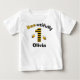 Denna glada personliga födelsedags-t-shirt för första födelsedagen har en stor siffra "1" mönstrad med feta svarta och gula horisontella ränder, som påminner om en humla. Två söta, leende tecknade bin med klara vingar flyger på vardera sidan.