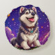 Glad Husky Mot Stjärnhimmel Rund Kudde