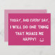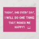 Letar du efter ett sött motivationskort till någon du älskar? Hur är det med detta söta rosa och vita inspirationskort som säger 'Idag och varje dag kommer jag att göra en sak som gör mig glad!' skrivet med coola vita bokstäver bredvid en söt leende ansiktsdesign?