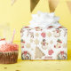 Slå in dina presenter med en söt touch av julstämning! Detta festliga inpackningspapper har en vit bakgrund översållad med charmiga julgodis – snöflingestjärnor, julgranar, handskar, renar och mycket mer – alla arrangerade i ett lekfullt och mysigt mönster. I hjärtat av designen finns en dekorativ krans som inramar ditt personliga foto, vilket gör varje gåva riktigt unik. Vid sidan av fotot står hälsningen: God jul från [Ditt namn] – ett meddelande som du enkelt kan anpassa genom att klicka på ”Personifiera denna mall”. Oavsett om du ger presenter till nära och kära nära eller fjärran, ger denna design en varm och hemmagjord känsla med en nypa julglitter.