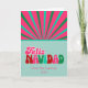 Bli glad att fira jul med denna roliga och färgglada design. Med texten "Feliz Navidad" i superljusa toner av rosa, röd, grön och turkos i en retro-typografi med bubbelstil och lätt att anpassa med ditt familjenamn och år (eller valfri text du önskar). Denna moderna vikbara julkort ger en ny mening åt orden glad och ljus!