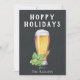 Målad ölbricka, humle och vete på svart tavla med matchande pubbmönster på baksidan, rolig "Glad jul"-kort.