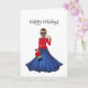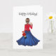 Clara iförd Nötknäppar-soldatdräkten modeillustration vykort. Hon bär den lilla musen på axeln och håller Nötknäppar-soldatleksaken i sin vänstra hand. Sött vinter julkort. Detta kommer att bli en bra present till döttrar, systrar och mödrar. Clara, musen och Nötknäppar-kortdesign kommer att bli en bra present till födelsedagar eller jul.