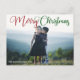 Glad jul Elegant Röd Grön Skript Foto Vykort