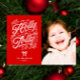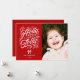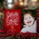 Skicka ut varma välgångsönskningar med detta personliga julfotokort, ett glatt och festligt sätt att dela en glimt av din familjs julglädje. Den klassiska röda bakgrunden skapar en djärv duk för den krispiga vita typografin av frasen "Holly Jolly" i ett vackert stiliserat, flödande manus. Varje bokstav är noggrant utformad med en handritad känsla, omgiven av fantasifulla, detaljerade illustrationer av julbärsgrenar och vintergröna kvistar som frammanar den klassiska bilden av julen. Ett delikat band vilar strax ovanför ditt familjenamn och året, vilket gör att designen känns både elegant och unik för dig. Det är den perfekta designen för att framhäva ett favoritfoto av en nära och kära, fånga deras glada julstämning och skicka det direkt till vänner och familj. Denna design talar till julens hjärta: att dela glädje, fira familjen och skapa bestående minnen. Kombinationen av klassiska festliga färger, tidlös typografi och personligt fotoutrymme gör det till en verkligt speciell souvenir som kommer att ge leenden till alla på din lista. Denna design är perfekt för dem som värdesätter traditionella jul