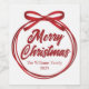 Elegant, modern kursiv skrift tvärs över ett vackert rött band och rosett läser MERRY CHRISTMAS med elegant kursiv typografi. En knuten rosett är supertrendigt för 2025 års julfestetiketter för vin. Anpassa med ditt familje- eller företagsnamn i mitten.