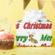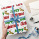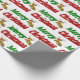 Presentpapper med Glad jul i 3D grön och röd text och en ren. Finns i flera stilar och storlekar.