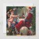Tomten möter Nyårskupid på en julfirande. Skicka hälsningar till nära och kära med detta speciella meddelande. Denna cigaretteriket bild är färgglad och full av julstämning. Det väntar på ditt personliga meddelande.