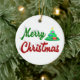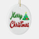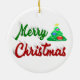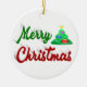 Glad jul gran röd grön skrift julgransprydnad keramik