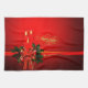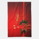 Tillsätt värme och festlighet till ditt hem. Dekorera ditt kök med denna snygga och stilrena kökshandduk som har röda ljus och juldekorationer . Du kan anpassa den genom att ta bort "Glad Jul"-mallen eller genom att ändra den med ditt eget meddelande.