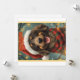 Bedårande hund är allt klädd för högtiderna för att önskas varm vinterglädje. Illustrationen av hunden gjordes med Canva AI.