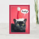 Den här irriterade svarta katten i en rolig tomteluva som funderar för sig själv är ett humoristiskt sätt att önsk någon en glad jul!