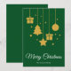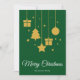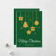 Glad jul i ett fint kalligrafiteckensnitt med hängande julgran, presenter, stjärna och julgranskula design. Detta gröna bakgrundsfärg julkort är utformat så att du kan ändra bakgrundsfärgen och även ange ditt familjenamn eller ta bort det om du önskar ha designen utan efternamnsraden.