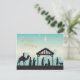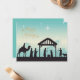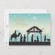 Dela lite lugn och mening under den här årstiden med det här vackert illustrerade julkortet med en krubba. Den mjuka blå-vitfärgade himlen, den lysande stjärnan och de klassiska siluetterna av den heliga familjen och de vise männen skapar en fridfull stund som känns både tidlös och fräsch. Orden "God Jul" är skrivna med en elegant typsnitt som ger ett mjukt och festligt intryck. Det är ett varmt sätt att knyta an till de människor som betyder något – perfekt för alla som älskar jultraditioner med en modern och lugn känsla.