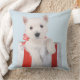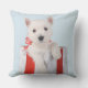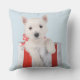 Pryda ditt hem denna höktid med denna eleganta och festliga kudde. Med en vacker bild av en söt vit valp i en julklappslåda på ljusblå bakgrund kommer den säkert att ge hela ditt hus en festlig känsla.