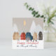 Dessa rustika julkort har primitiva saltboxar och koloniala hem framför bergen. Blåfåglar plockar det som är kvar av de röda bären på buskarna. Kortet säger Glad jul! nedanför och det finns en mall för att ange ditt familjenamn eller enskilda namn.