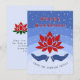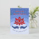Lotusblomman är en symbol för inre frid, återfödelse och styrka. En stiliserad lotus används här, i djupröd silhuett, med silhuettformade händer som bildar en skål för att önska "GLADA HELGDAGAR". Denna är redigerbar, liksom texten längre ner "FRÅN JOHNSONS FAMILJ". Bakgrunden har nyanser av blått för att förmedla lugn och harmoni, samt en strödd av snöflingor. Det finns ytterligare två lotusblommor i rött och grönt på baksidan, på en enkel blekblå bakgrund. Standardmeddelandet på baksidan är "Maj det kommande året vara som en lotusblomma, som vecklar ut sig med skönhet, glädje och frid.". Anpassa detta efter behov.