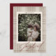 Med glad skript typografi och en rustik pläd bakgrund är detta julkort perfekt för dem som letar efter ett mysigt klassiskt julkort med vintagevibbar. Anpassa med ditt familjenamn och foto