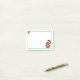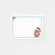 Söt glad jul potatis som sportar en rolig vit mustasch och skägg och bär en röd och vit tomtehatt och kostym sitter i nedre högra hörnet av dessa söta lappar. I övre vänstra hörnet finns två gröna julblad med ljusröda bär.
