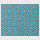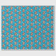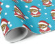 Upprepa mönster av en glad julpotatis i tomteluva och dräkt och med vit mustasch och skägg. Blå bakgrund med massor av vita snöflingor.