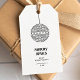 Glad jul presentkort med trendig julgransprydnad presentetikett