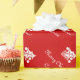 Glad jul presentpapper med anpassade önskningar | Xmas blad design. Personlig idé för presentinslagning med eget namn och högtidshälsning. Anpassningsbara röda bakgrundsfärger och hälsning. Överraska din familj; pappa, mamma, farfar, syster etc. med personliga säsongshälsningar.